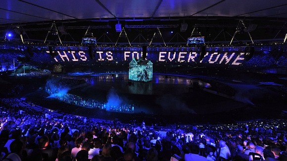 Hubo un momento de la ceremonia que llamó la atención. Sobre una réplica de una típica casa londinense, se proyectaron luces e imágenes de un par de jóvenes chateando. Luego, la casa se levantó de la plataforma en la que estaba ubicada y salió a escena Sir Tim Bernes-Lee sentado en una mesa y tecleando una vieja computadora. Mientras hacía eso, los panales digitales ubicados en las gradas del estadio olímpico de Londres proyectaban el siguiente texto “This is for everone” Bernes-Lee se levantó, saludó al publico que lo ovacionaba y el presentador del evento lo anunció como el creador de la Wordl Wide Web o Red Informática Mundial.